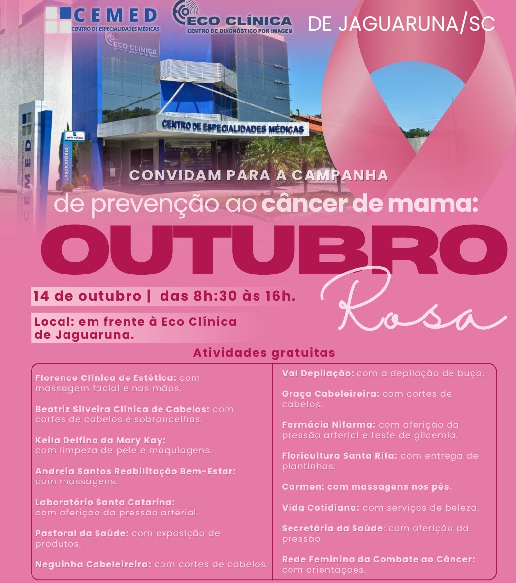 Destaques Cemed e Eco Clinica Convidam para o Evento da Campanha de Prevenção do Câncer de Mama 6 out | 0