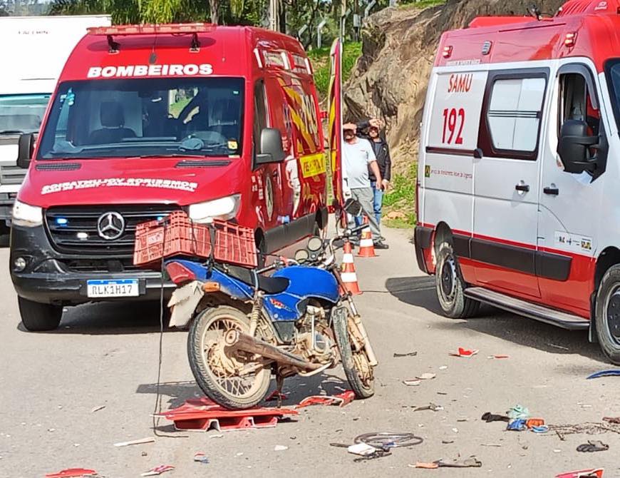 Bombeiros Voluntários de Jaguaruna Motociclista morre em colisão frontal com uma carreta na SC-443, em Treze de Maio 8 outubro 2025 | 0