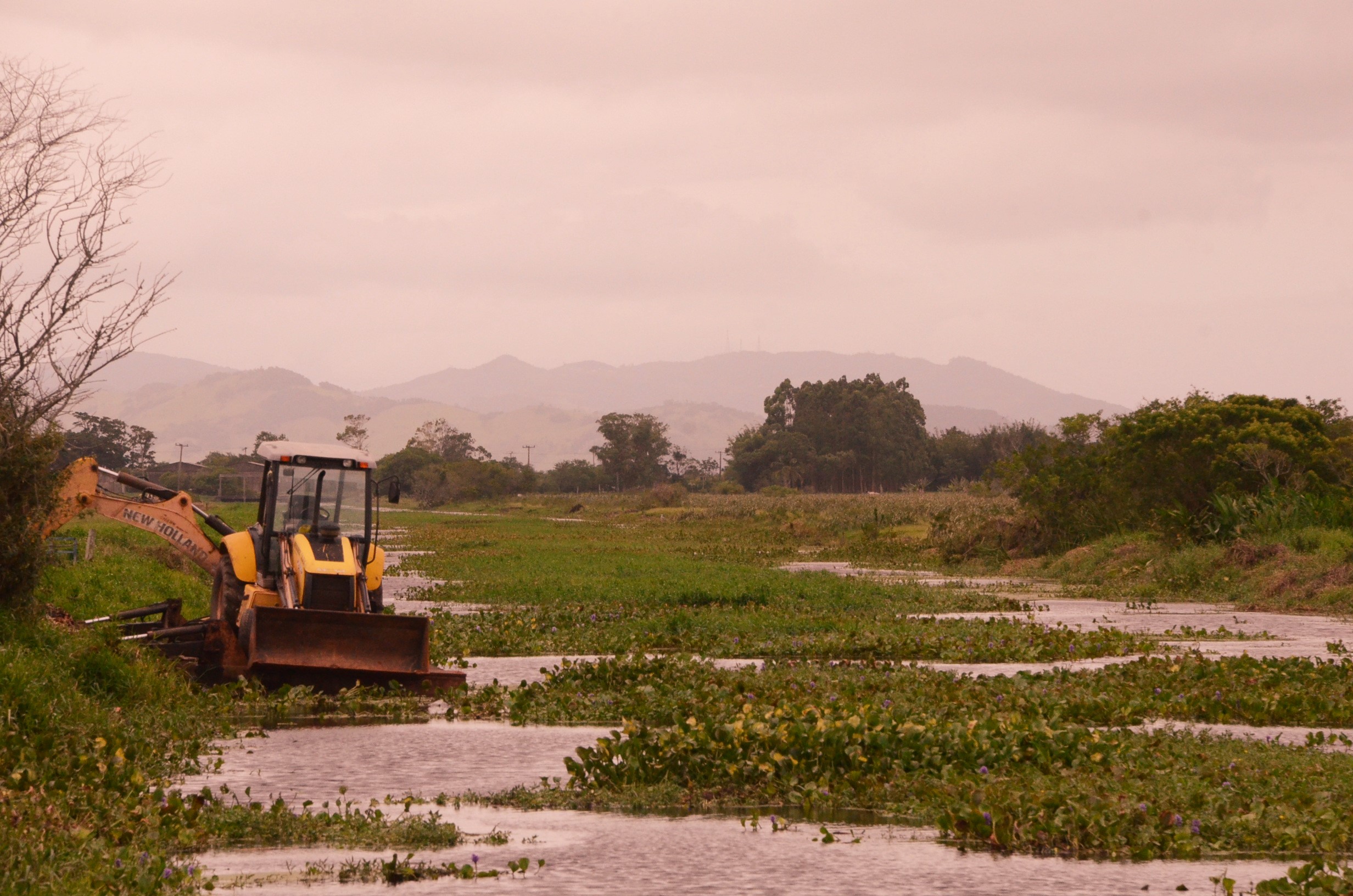 O Rio riachinho na comunidade do riacho dos franciscos em Jaguaruna ,após a grande reclamação de diversos agricultores e rizicultores que solicitaram que algo fosse feito na limpeza do mesmo pois estavam com medo de perder a sua produção e após matéria em diversos meios de comunicação do nosso município, parece que resolveram dar início a tarefa que não é das menores,porém só deram início e pararam.