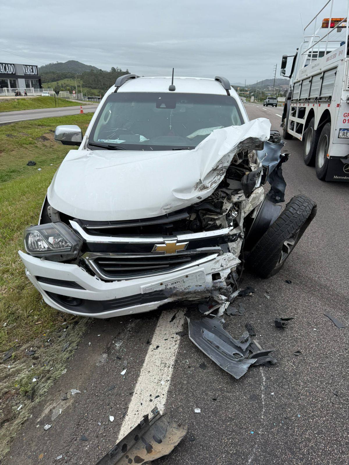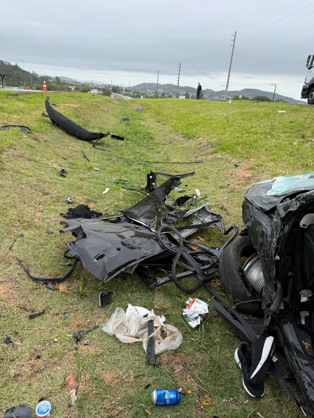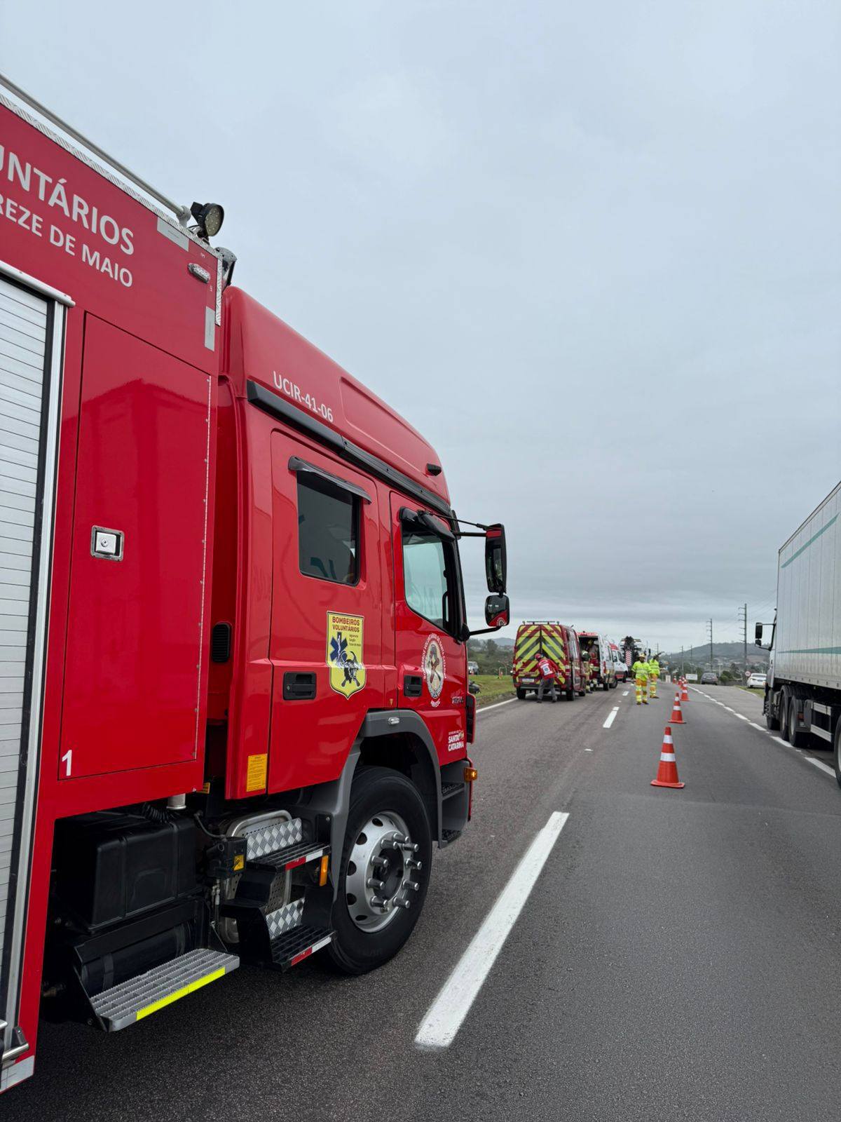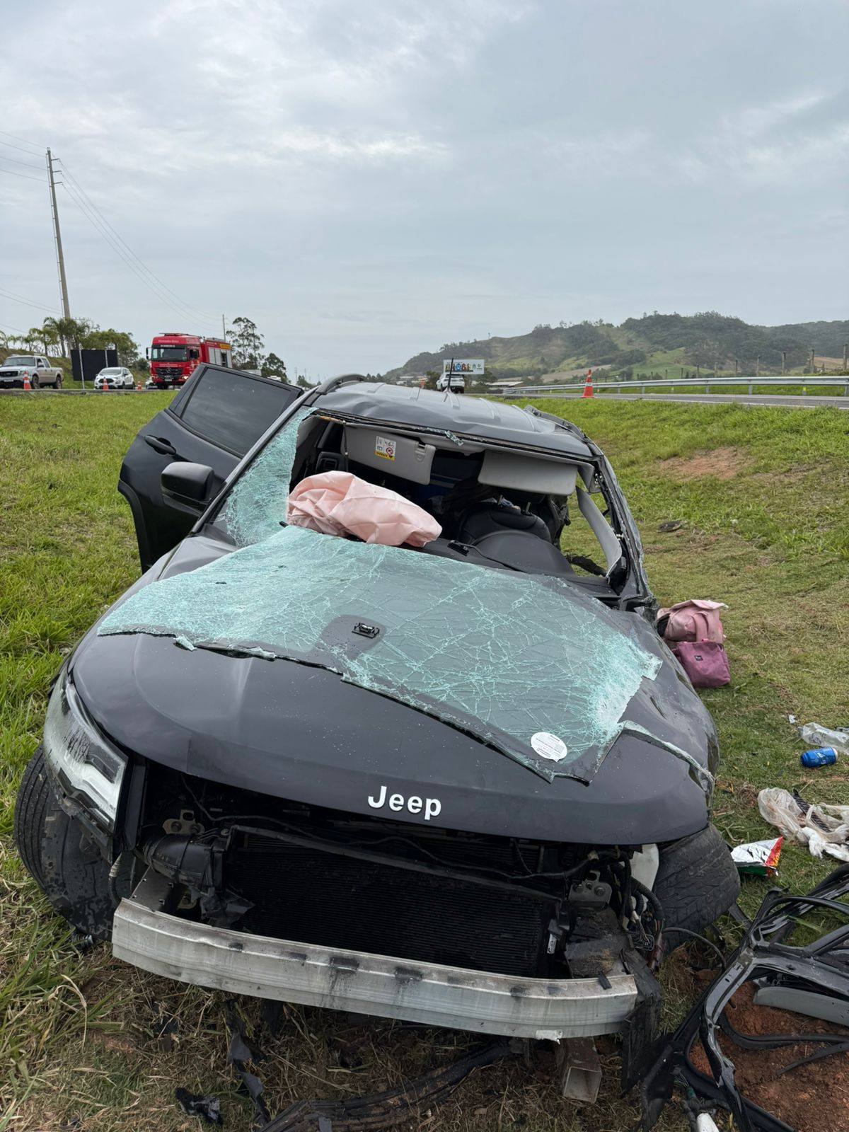 Domingo dia 26/10 por volta das 11h50 os bombeiros voluntários de Jaguaruna ,foram acionados para uma colisão frontal carro x carro na BR 101 Morro Azul – km 352 em Jaguaruna. Chegado no local uma viatura avançada do SAMU que estava passando pelo local na hora do acidente parou para fazer o primeiro atendimento. Constatado 4 vítimas no veiculo Jeep com placa da Paraída, uma feminina 41 anos condutora, o caroneiro do banco da frente um masculino de 25 anos com ferimentos leves, foram protocolados e encaminhados ao hospital referencia em trauma HNSC em Tubarão. Os passageiros do banco traseiro um masculino de 22 anos em estado grave foi entubado na cena e conduzido pela equipe avançada do SAMU ao hospital HNSC em Tubarão, a outra ocupante uma feminina apresentava corte contuso na região frontal da cabeça com suspeita de TCE (trauma cranioencefálico) e ferimentos pelo corpo sendo protocolada e encaminhado ao hospital HCJ pela nossa guarnição. No automóvel S/10 com placas de Joinville um masculino de 60 anos deambulando na cena sem ferimentos assinou recusa de atendimento e transporte no local, a caroneira uma feminina de 59 anos relatava dor na região do pescoço e dificuldade para respirar sendo protocolada e encaminhada ao hospital HCJ em Jaguaruna pela nossa guarnição. Estiveram dando apoio na ocorrência CCR Via Costeira, SAMU/USA, Bombeiro Militar, Saer/Samu Aeromédico e a PRF (Policia Rodoviária Federal)