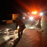 Policia Rodoviária Estadual acaba de comunicar (20 horas de domingo) que as baixas temperaturas deste fim de tarde e início de noite no litoral Sul e planalto Serrano, associado ao ciclone extratropical que vem trazendo ventos fortes e frio extremo para as próximas horas e dias em todo o Sul do Brasil, leva às condições de congelamento da pista de rolamento na Serra do Rio do Rastro. Por isso, por enquanto os patrulheiros estão apenas solicitando muito cuidado a motoristas, mas já alertando que a qualquer momento poderão ter que bloquear a rodovia, caso a situação se agrave. Fotos tiradas há pouco mostram os patrulheiros neste meio de noite espalhando sal nos pontos mais críticos da subida da Serra para reduzir os efeitos do congelamento e permitir o trafego de veículos.