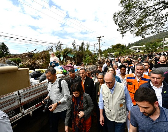 O presidente da República em exercício, Geraldo Alckmin, e uma comitiva de ministros foram ao Rio Grande do Sul neste domingo, dia 10, e percorreram a região do Vale do Taquari, a mais afetada pelas chuvas e inundações.