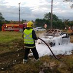 No local a guarnição se deparou com a carcaça de um veículo Fiat Palio que estava em chamas, ao lado de uma residência. Segundo populares, antes do socorro chegar, eles usaram uma máquina de construção Pá carregadeira para afastar o veículo e usaram terra para conter o fogo. A equipe fez a segurança e o controle das poucas chamas que ainda existiam.