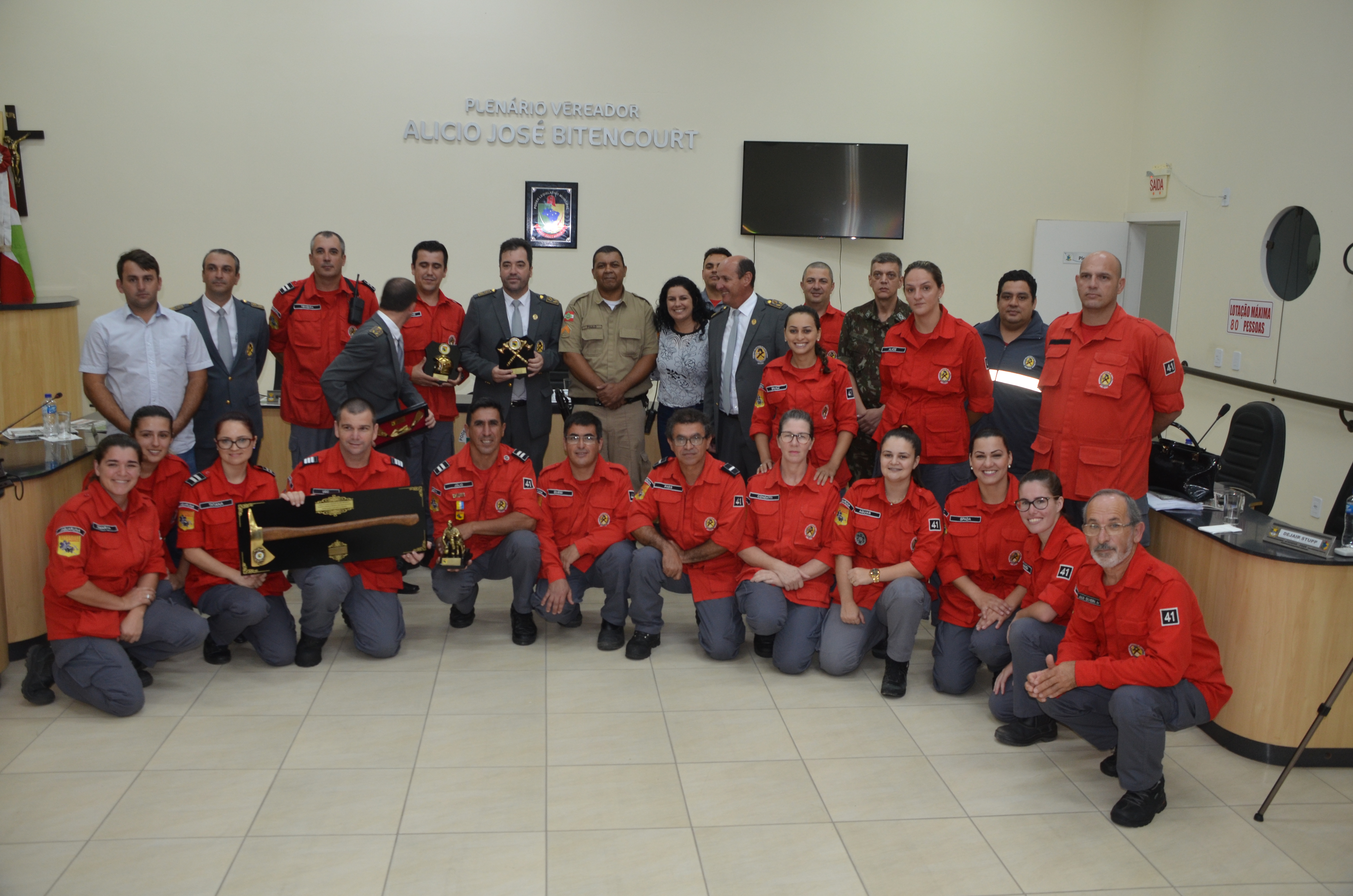 Receberam homenagem  os bombeiros voluntários que estão a frente da coporação durante os 10m anos.Foram homenageados o Comandante de operações dos bombeiros voluntários,Ugo Leonardo Medeiros, juntamente com o o Sub Comandante dos bombeiros voluntários Júlio Cesar Siqueira,além dos bombeiros voluntários,Alício da Cruz Bitencourt, Marcos Correia,Emerson Antônio da Silva,Maicon Laureano,Anderson de Carvalho Nandi,e o empresário sócio proprietário da Ford Florisa Luciano Menezes.