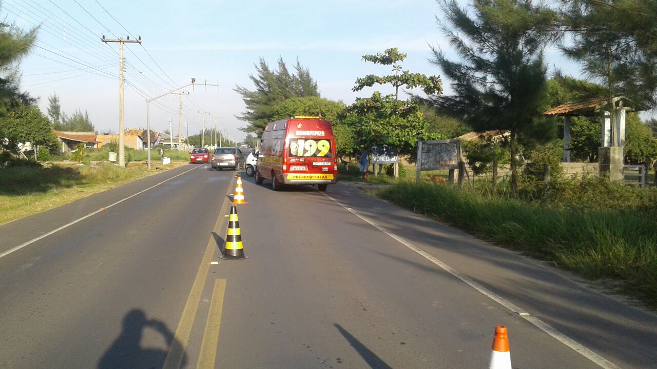 O segundo ocupante da motocicleta, maior sentado na beira da via, referia dor no membro inferior esquerdo onde foram feitos procedimentos de imobilização em membro e colocado em maca rígida. Ambos encaminhados ao hospital de Jaguaruna. Os dois ocupantes do veículo celta, nao referiam queixas foram avaliadas, porém não quiseram ser conduzidas ao hospital. Assinando recusa de atendimento no local.Trabalharam nessa ocorrência, bombeiros voluntários de jaguar una, Sangao o e Treze de maio, uma guarnição do Samu e a PRE.