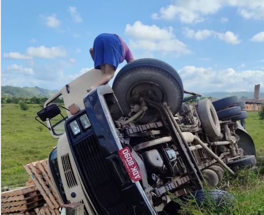 Um caminhão que seguia no sentido de Treze de Maio para Morro da Fumaça, carregado com pallets, saiu da pista e capotou. O motorista, que permaneceu dentro do veículo, sofreu escoriações e foi rapidamente atendido pelo Corpo de Bombeiros de Morro da Fumaça.