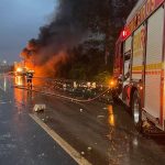 Este acabou incendiando. Não houve vítimas. O congestionamento é de aproximadamente 4 km. Pista da esquerda liberada.