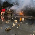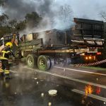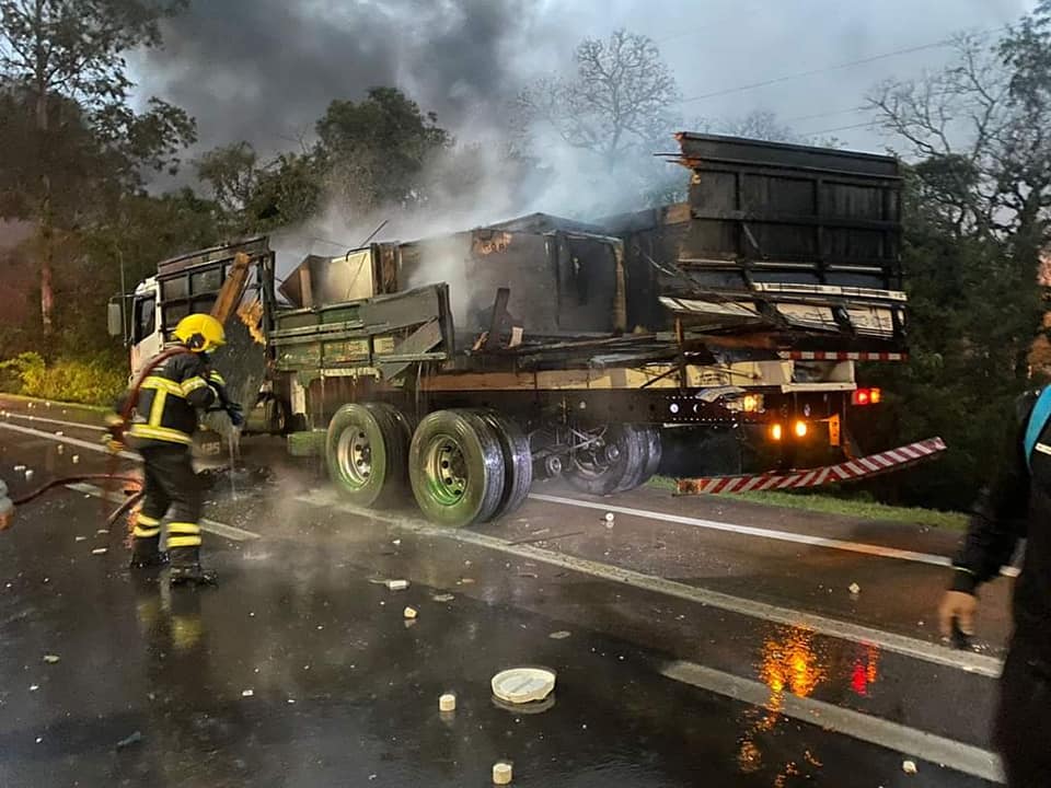 Caminhões se envolvem em acidente com incêndio na BR 290 RS
