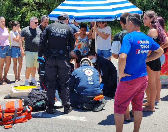 Vítima sofreu suspeita de fratura e foi transferida pela aeronave ao hospital de Tubarão