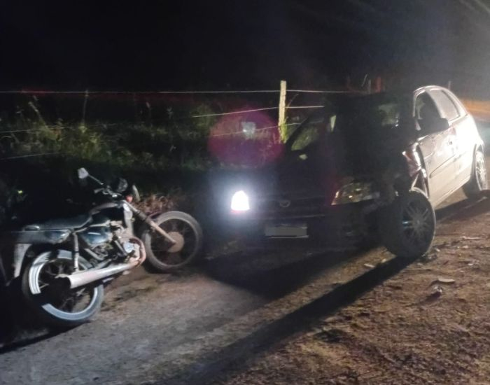 O cenário encontrado na Estrada Geral do bairro Canela Grande era de uma colisão frontal envolvendo um automóvel de passeio e uma motocicleta.