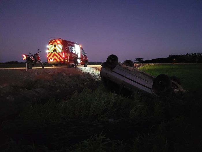 O veículo envolvido no acidente era um Fiat/Uno com placa de Jaguaruna, que agora será objeto de investigação para determinar as circunstâncias do capotamento.