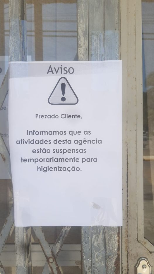 “Aviso: Prezados Clientes, informamos que as atividades desta agência estão suspensas temporariamente para higienização”.