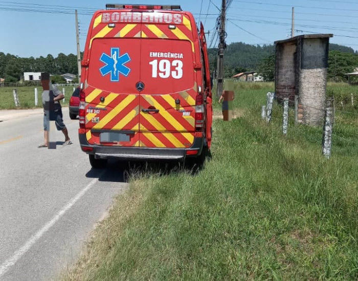 O motociclista, 38 anos, foi encontrado consciente e orientado, sentado nas margens da via, com possível fratura no tornozelo esquerdo e escoriação na panturrilha direita. Após atendimento pré-hospitalar, ele foi conduzido ao hospital de Jaguaruna.