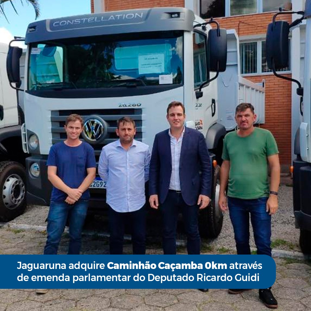 O caminhão é da marca Volkswagen, modelo Constellation 26280 traçado e equipado com caçamba basculante. Segundo o prefeito Laerte Silva, a nova aquisição reforçará ainda mais a renovação da frota do município e será possível intensificar o ritmo das atividades de manutenção das estradas rurais, bem como nos diversos serviços feitos na área urbana, oferecendo melhorias para toda a população Jaguarunense.