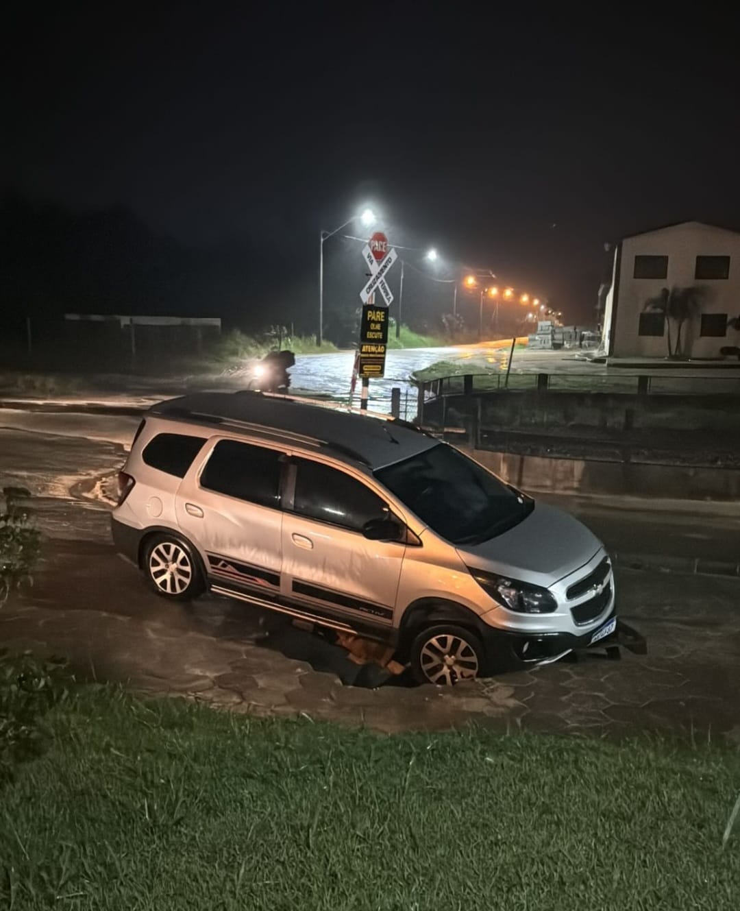 Além dos alagamentos nas areas centrais,a Rua Alfredo Bernardino nas proximidades da travessia de nível que da acesso a secretaria de obras, teve registros de dois veículos que cairam dentro de um enorme buraco que surgiu no meio da rodovia após a manutenção de uma parte da rua e que não recebeu a devida sinalização após o serviço que não ficou completo.