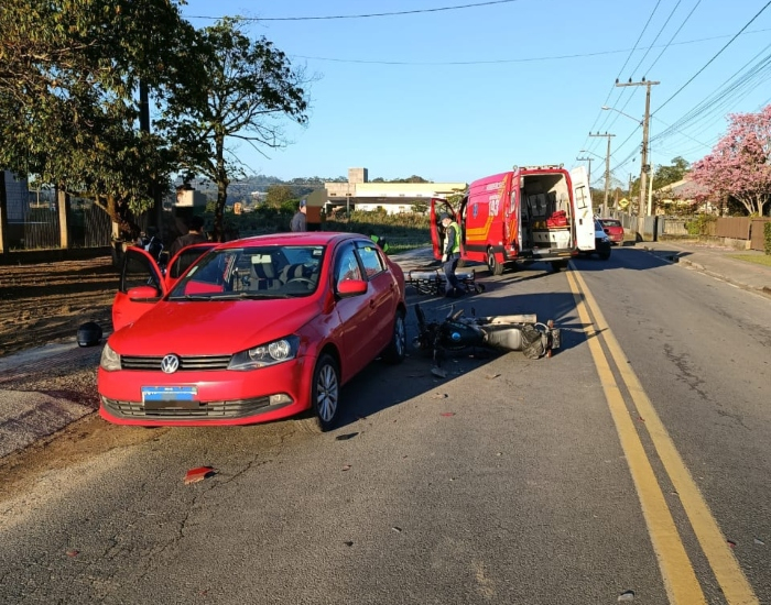 Uma colisão entre um carro e uma moto foi registrada na manhã desta quarta-feira, dia 10, na localidade de Estação Cocal, em Morro da Fumaça. O Corpo de Bombeiros foi acionado na Rua João de Rochi para atender a ocorrência.