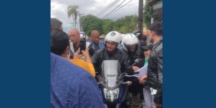 O presidente, ainda de moto e capacete branco, posou para foto com apoiadores. Nas imagens, ele está cercado de seguranças, que também estão usando capacete do mesmo modelo.