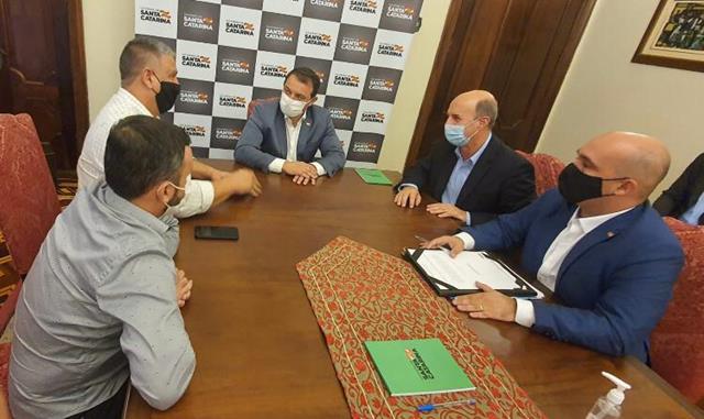Lançado edital de licitação da SC 443 Sangão – BR 101,o deputado Zé Milton, acompanhado do prefeito de Sangão, Castilho Silvano, presidente da Câmara de Vereadores, Anderson de Souza, estiveram com o Governador Carlos Moises e com o secretário de Infraestrutura, Tiago Vieira, para o lançamento do edital de licitação da revitalização da Rodovia SC 443, Sangão,