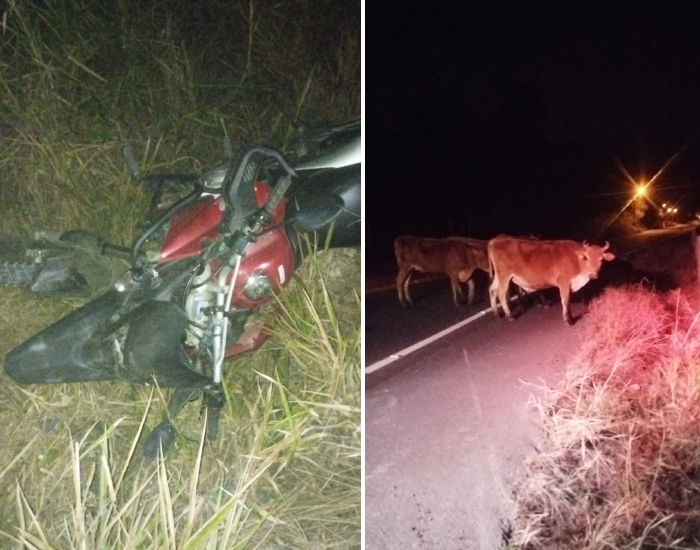 Bois soltos na rodovia entre Tubarão e Treze de Maio, na localidade de Lajeado, provocaram um acidente de trânsito na madrugada desta quarta-feira, dia 7.