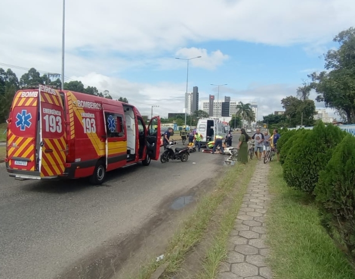 Uma colisão entre duas motocicletas deixou duas mulheres feridas nesta quinta-feira, dia 13, na Avenida Marcolino Martins Cabral, no bairro Passagem, em Tubarão, próximo ao quartel do Exército.