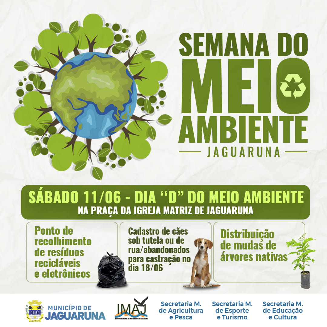 O Instituto Municipal do Meio Ambiente de Jaguaruna convida a participar da campanha “É Hora de Reciclar”, tema da Semana do Meio Ambiente que acontece entre os dias 06/06 a 11/06.