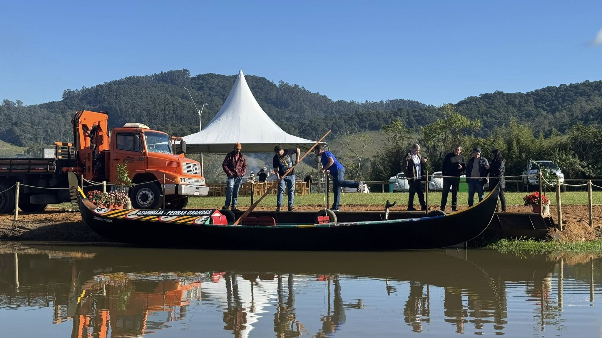 A manhã festiva começou às 10h30 com recepção no parque, seguido de uma costelada ao meio-dia. O prefeito Agnaldo Filippi fez a apresentação oficial da embarcação ao público. “Queremos surpreender quem visita Pedras Grandes com criatividade e respeito ao nosso passado. Essa gôndola mostra que é possível unir tradição, sustentabilidade e turismo num só projeto”, afirmou.