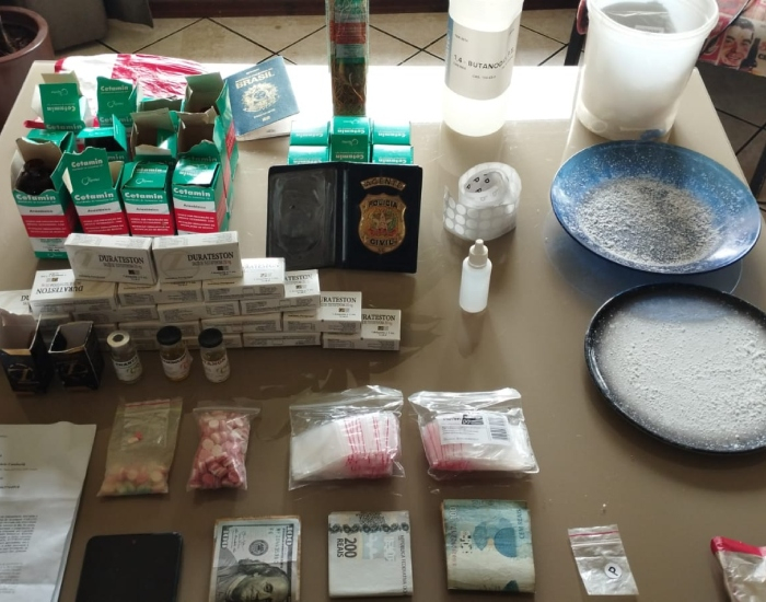 No momento da chegada dos policiais no imóvel, o investigado estava realizando o preparo da cetamina para venda. Essa substância é um analgésico usado sobretudo em animais e tem um alto risco de letalidade conforme a dose aplicada.