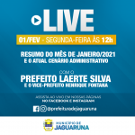 O resumo do mês de janeiro e o atual cenário administrativo, dentre outras informações importantes referentes ao município, serão apresentados durante a transmissão.