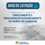 A Prefeitura de Jaguaruna lançou na tarde desta quinta-feira (12) o edital de licitação para contratar a empresa que vai realizar o desassoreamento e o enrocamento da Barra do Camacho. Os trabalhos estão divididos em dois lotes que devem ser executados pela mesma empreiteira.