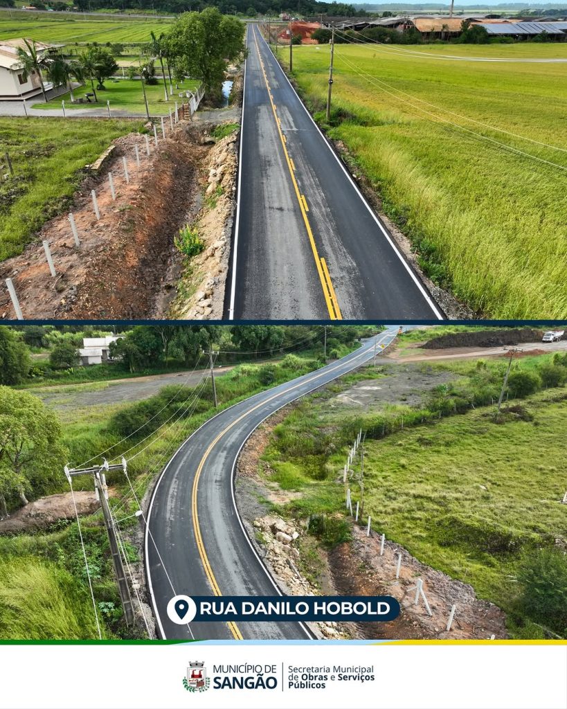 Nesta semana, a Prefeitura de Sangão finalizou a pavimentação da Rua Danilo Hobold, no bairro Garganta (Santa Apolônia), com investimento de R$ 1.091.000,00 – parte do valor foi destinada pelo programa estadual “SC Levada a Sério”. A obra contou com pavimentação asfáltica, além de serviços de sinalização e drenagem pluvial.