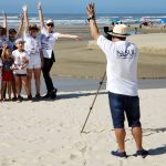Na oportunidade foi instalada no local uma tenda personalizada do projeto, com objetivo de realizar inicialmente alongamentos e a postura certa para agachamentos durante os movimentos de recolhimentos dos lixos na orla marítima do balneário arroio corrente.