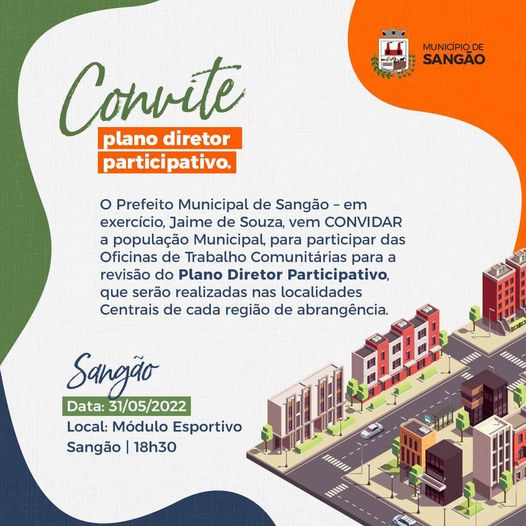 Lembrando que hoje tem a Oficina Comunitária do Plano Diretor Participativo em Sangão.