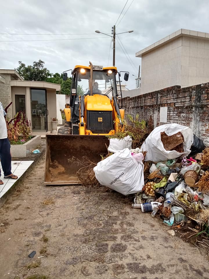 Toda equipe da referida secretaria esta dando continuidade da limpeza do cemitério no centro da cidade,