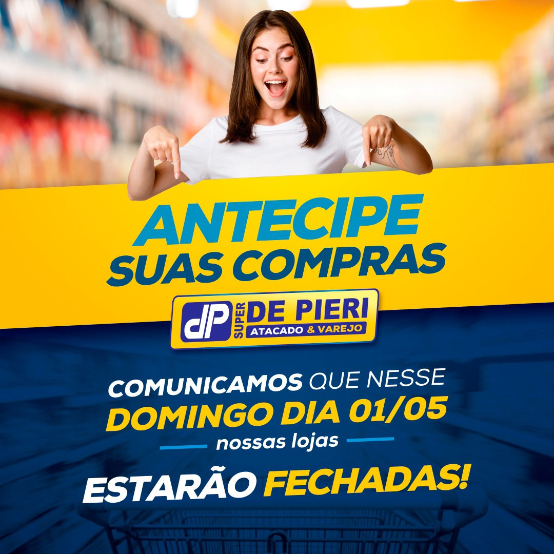 O Super Depieri convida a você a visitar suas lojas e antecipar suas compras pois domingo é feriado do dia do trabalhador e as lojas estarão fechadas.