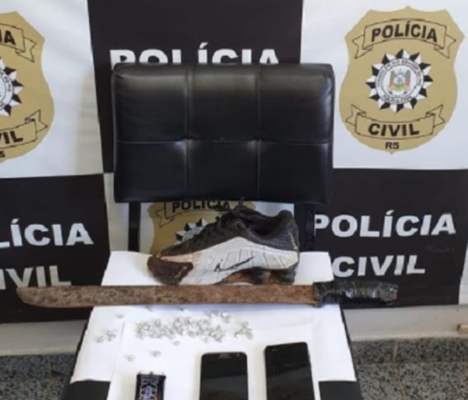O adolescente, de 17 anos de idade, que tem antecedentes por tráfico de drogas, foi apreendido e encaminhado à FASE. Em seu poder, ainda restaram apreendidas diversas pedras de crack. Também foi apreendido na casa o facão utilizado no crime. Seguem as investigações visando identificação dos outros dois elementos.