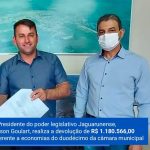 Os processos de devoluções ocorreram ao longo do ano, divididos em três parcelas, sendo que a primeira no valor de R$ 250.000,00, ocorrida no mês de maio, os recursos foram destinados para a elaboração do Projeto de Execução de pavimentação asfáltica da Rodovia Municipal Pedro Rosa Lemos, que liga o bairro Jabuticabeira ao bairro Congonhas – Tubarão – SC;