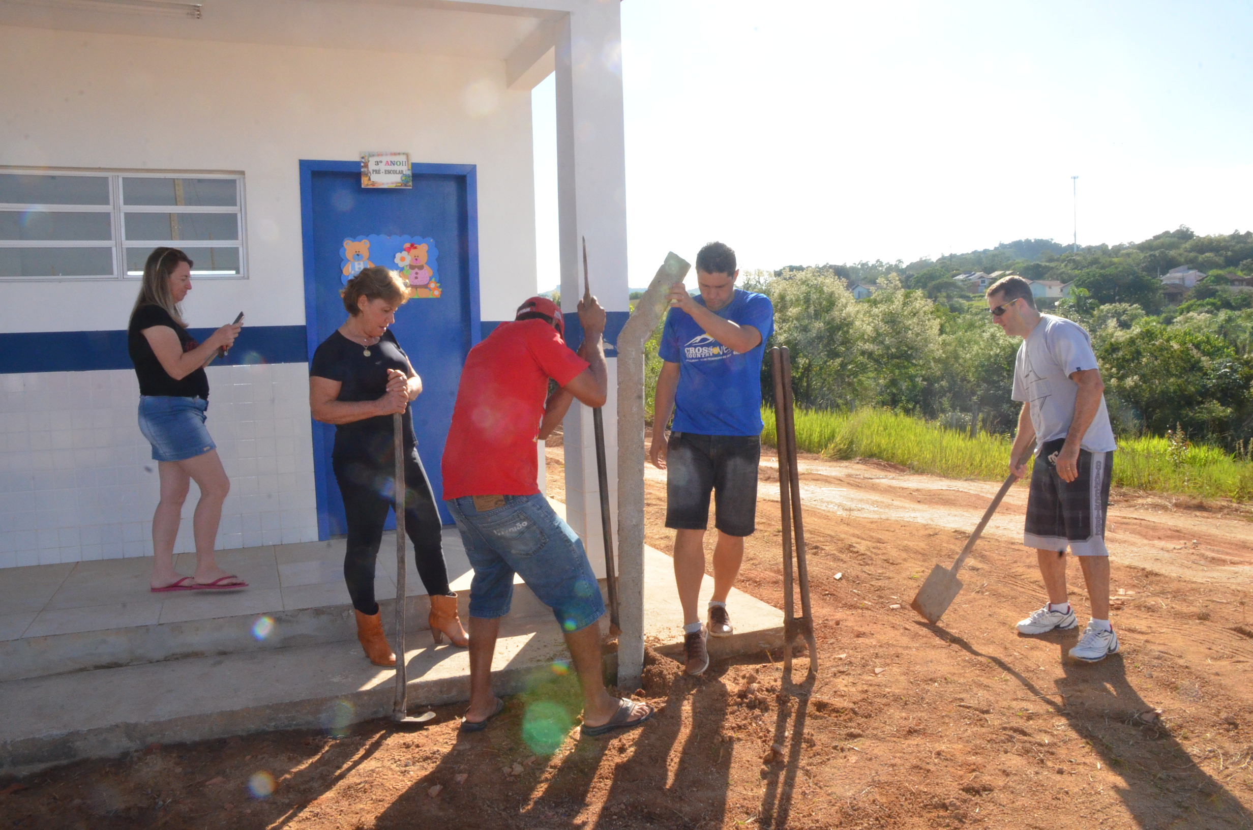 Uma das voluntárias foi a Vereadora Terezinha de Souza Nandi que juntamente com os demais voluntários homens e mulheres ,,professoras,pedagogas,empresários e odontólogo, e pais de alunos participaram do mutirão dando a sua contribuição,para que todas as crianças possam realmente estudar em local mais espaçoso,mais aconchegante,mais seguro. É importante este mutirão com a iniciativa da APP e de Pais e voluntários pois as crianças não teriam mais condições de continuar estudando na escola antiga.Nem tudo esta pronto porém um paliativo para iniciar o ano letivo,falta muita coisa para ficar tudo 100%,pavimentação do patio,pavimentação do acesso,muros ao redor da escola entre outros quesitos.