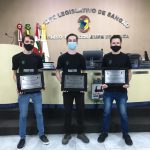 Durante a última sessão ordinária de segunda feira 08/11, na câmara de vereadores de Sangâo aconteceu uma homenagem e a entrega da Moção Honrosa de nº 004/2021 sob a proponência do vereador proponente Alécio João Goulart aos integrantes da equipe do IFISC e estudantes do Curso de Mecatrônica do Campus de Criciúma do IFSC ,receberam as moções os jovens Kamylo Serafim Porto, Lucas Adriano dos Anjos e Kauan Biring Fontanela.