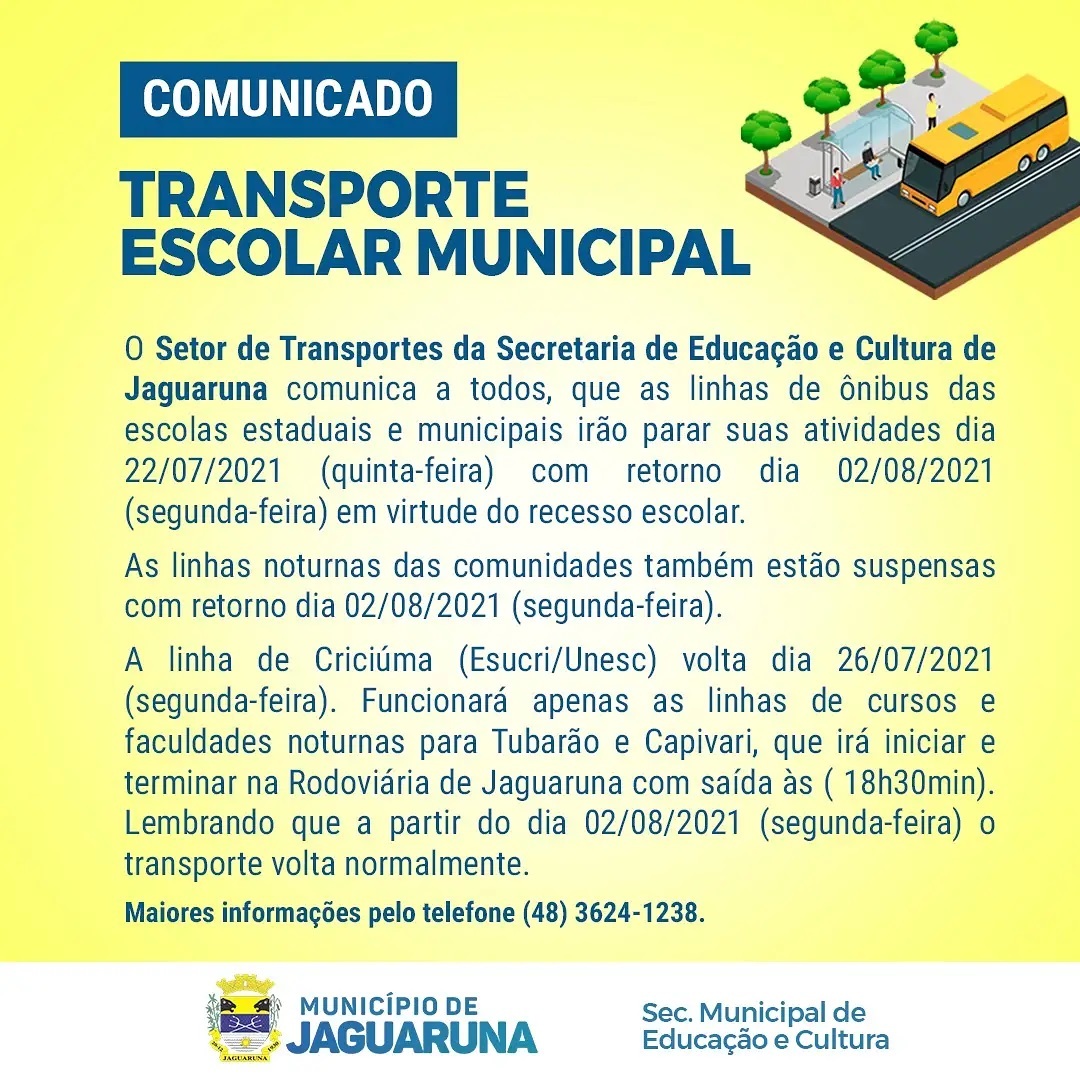 21julho Comunicado Secretaria Municipal de Educação-Transportes Intermunicipal Escolar João Carlos Idalencio Autor
