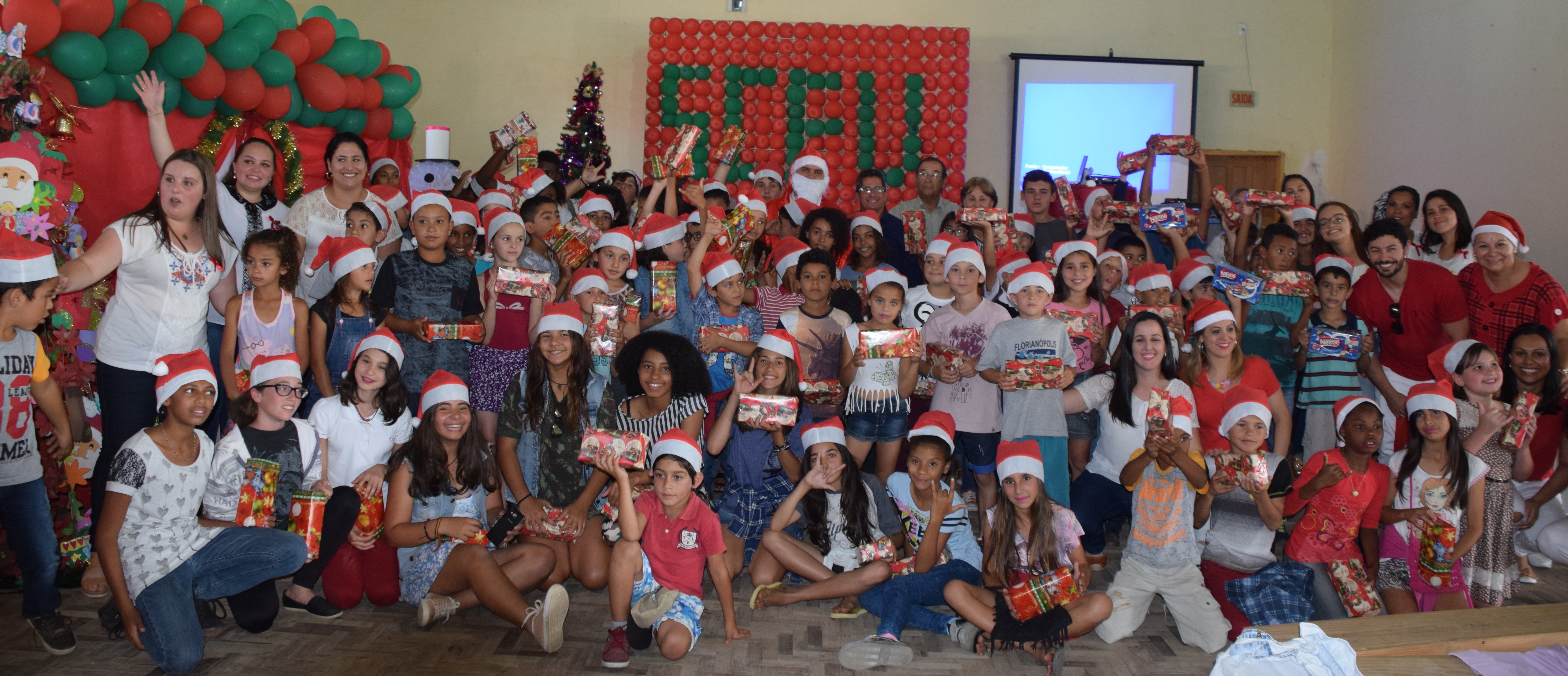 Com a presença do Vice Prefeito Francisco Elpídio de Souza ,do Presidente da Câmara de vereadores Vereador Geraldo José ,juntamente com a Vereadora Terezinha de Souza Nandi e o vereador Dejair Stupp,assim com a organização da equipe da secretaria de assistência social agora com o comando da atual Secretária Vanuza Lessa Goulart e toda equipe de professores e monitores dos projetos aconteceu a grande festa de encerramento do ano de 2017.