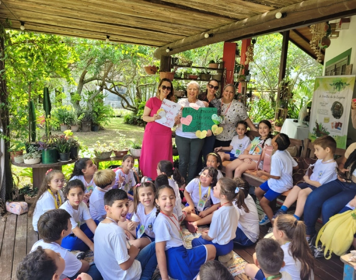 O encontro organizado pela professora regente Jeanine Theodoro, ocorreu na residência da escritora de Tubarão Edla Zim, que possui oito livros publicados e iniciou um projeto de educação ambiental literário. Elas organizaram uma tarde de autógrafos com o intuito de despertar o interesse das crianças pela leitura e oportunizar o contato com uma escritora e conhecer o celeiro de toda sua produção. O livro escolhido pela professora foi “A família do Sr. Lagarto” que terá todo o seu processo criativo trabalhado no ano de 2024 em sala de aula.