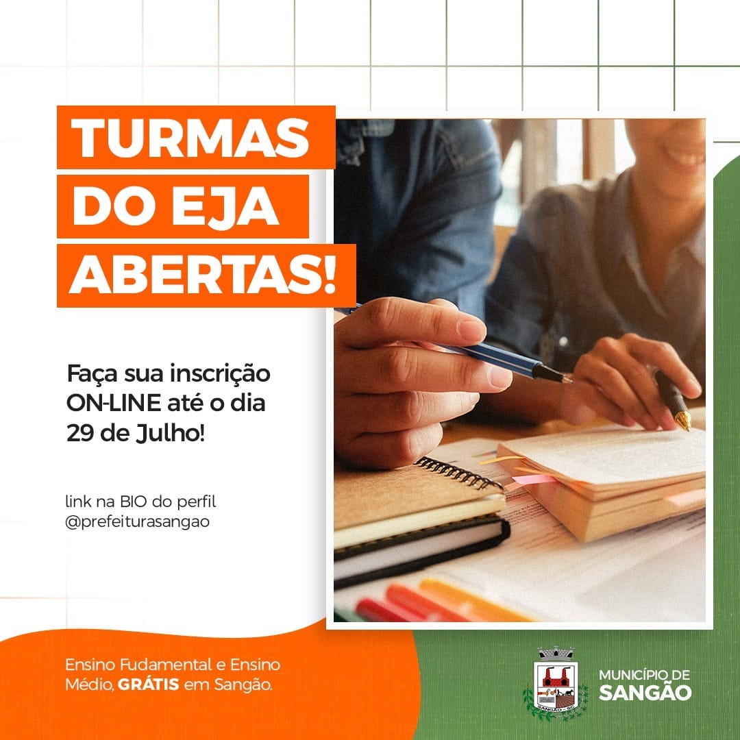 Para quem quer terminar os estudos, ainda dá tempo de fazer sua matrícula no EJA, a secretaria de educação, esporte, cultura e turismo de Sangão, estendeu a data até dia 29/07, através do link na bio do instagram da Prefeitura @prefeiturasangao.