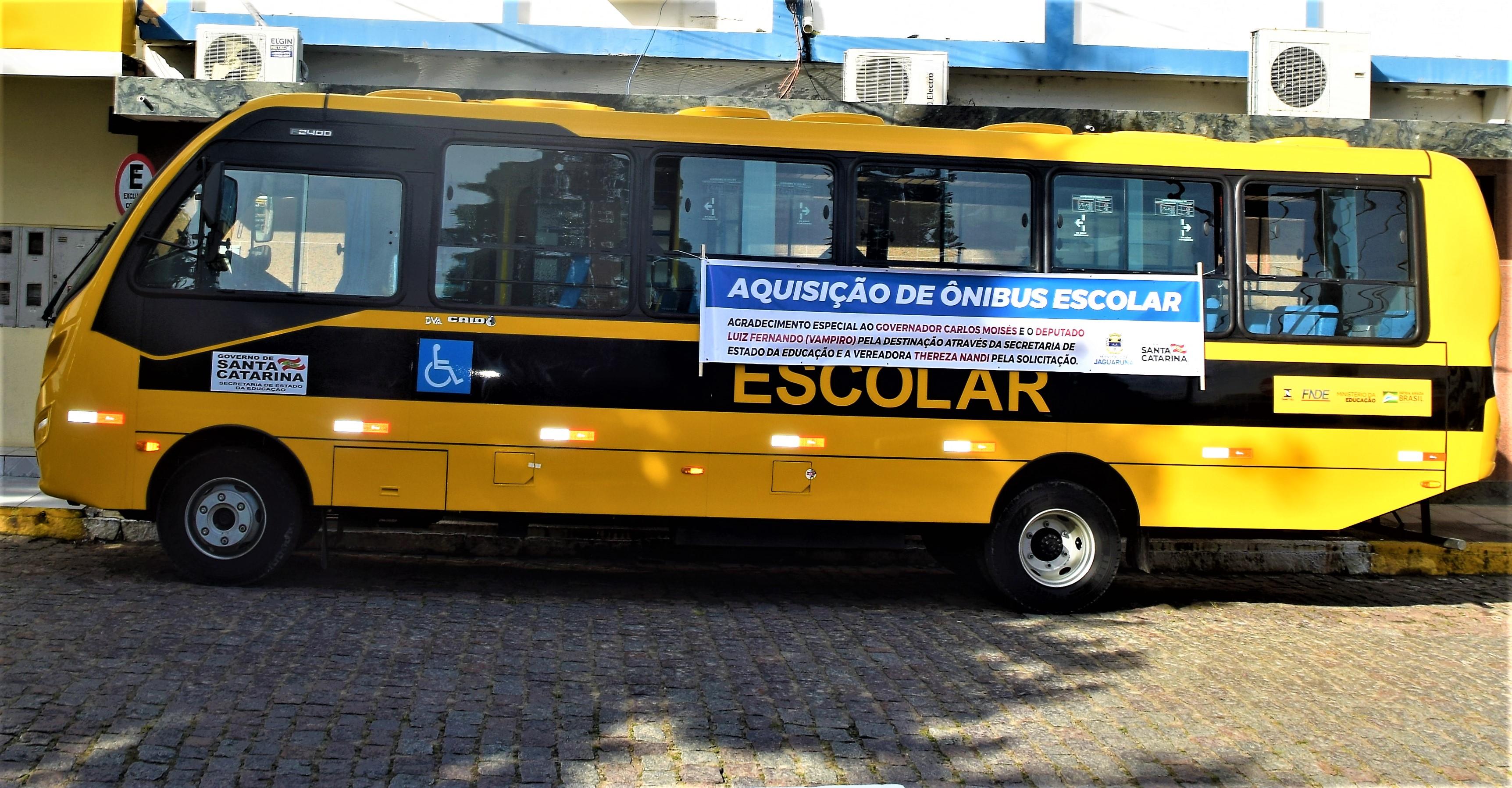 O Municipío de Jaguaruna através do Governo do Estado de Santa Catarina ,com  a indicação do Deputado Luiz Fernando Cardoso (Vampiro ) ,com a solicitação da Vereadora Terezinha de Souza Nandi,atual Presidente da Câmara de Vereadores de Jaguaruna, foi comtempladocom mais um ônibus escolar com capacidade de trasportar 48 alunos  ônibus este que fará apartir de agora parte da frota da secretaria de educação.