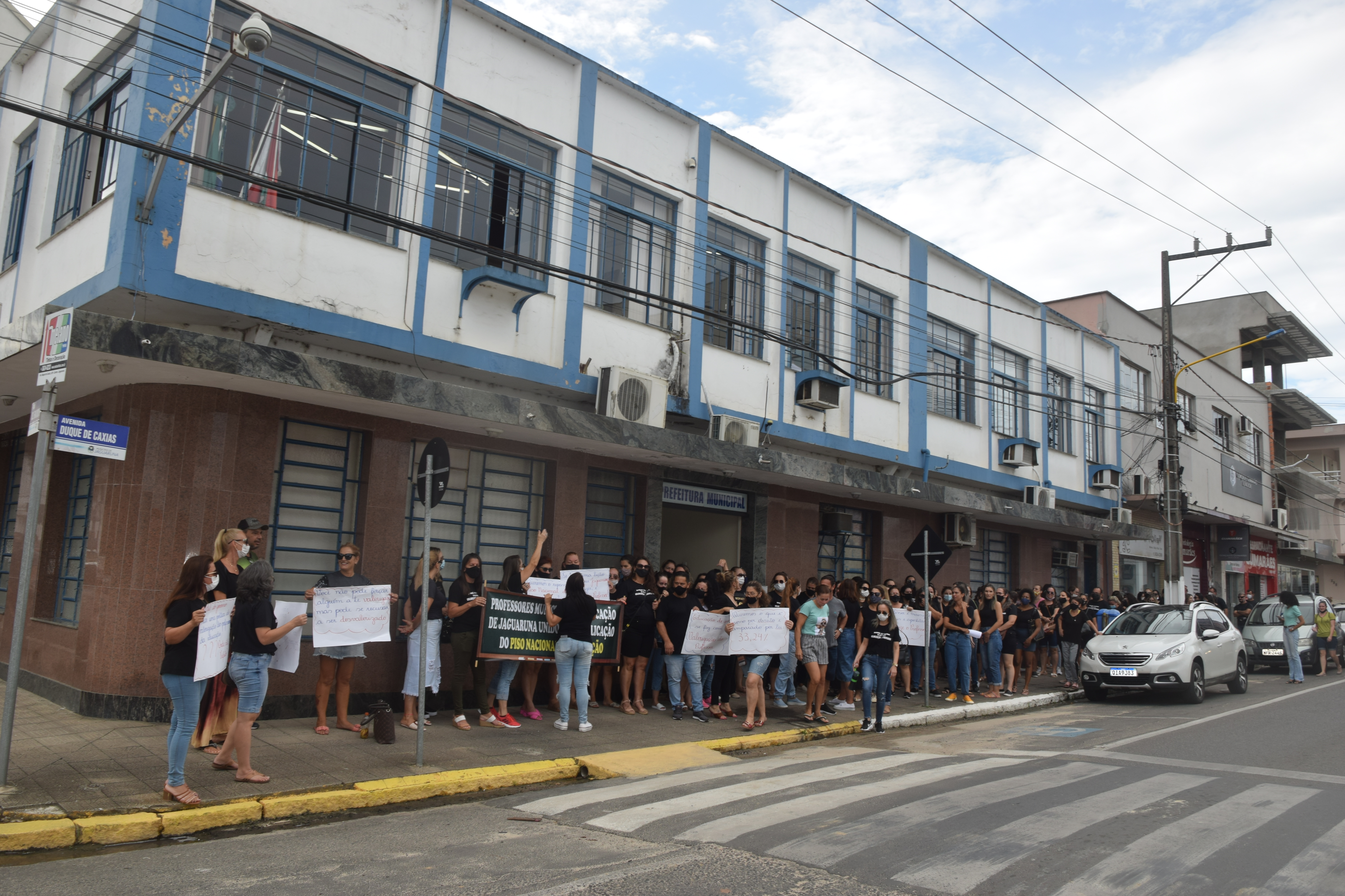 Após diversas reuniões, manifestações ,passeatas onde os professores fizeram um grande evento em benefício da categoria na porta da prefeitura municipal, com apenas um objetivo o de buscar o percentual do piso da categoria com um percentual que deveria ser de 33% infelizmente o percentual não chegou ao esperado pela classe da educação Jaguarunense.