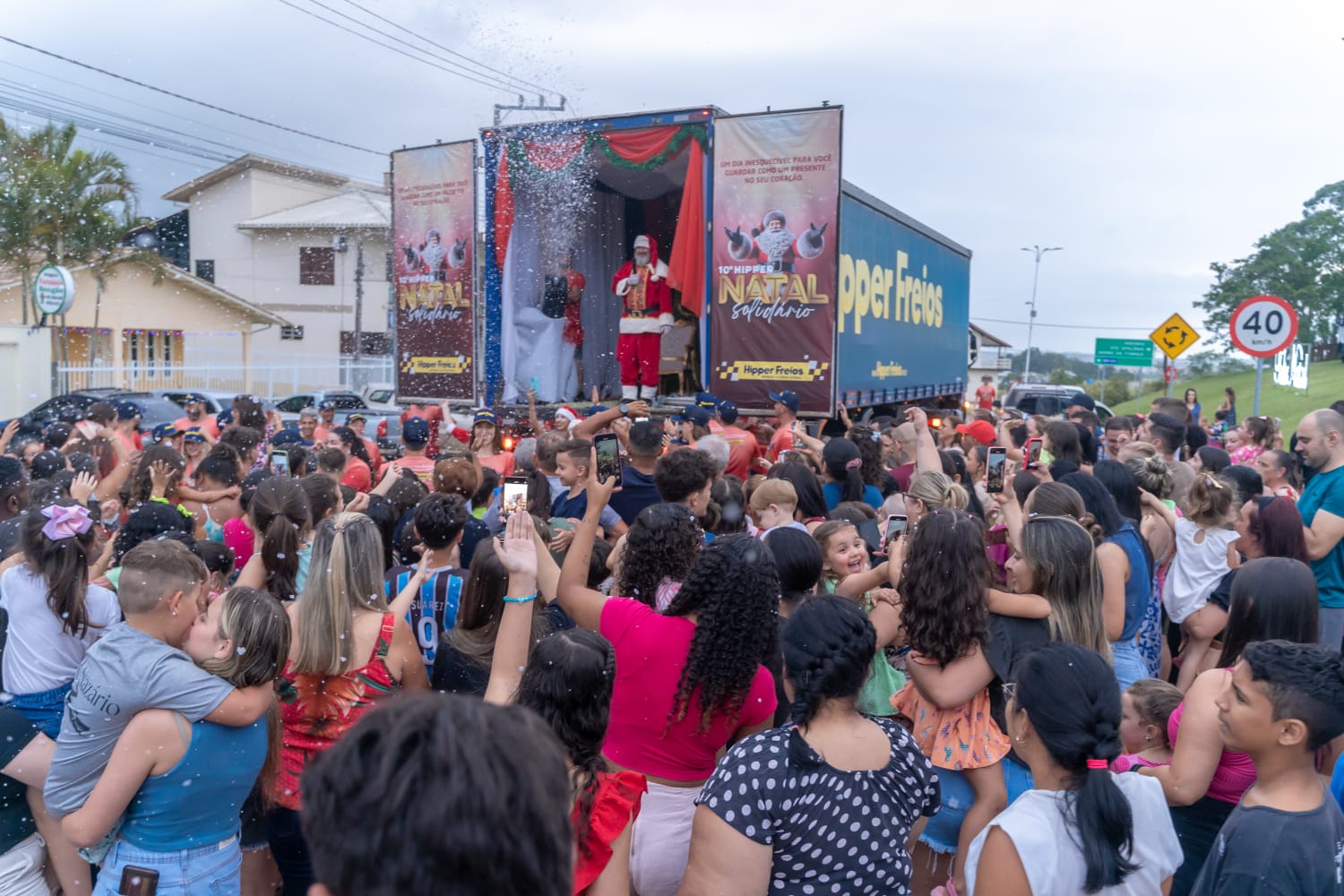 Luz, som, música e esperança: No último dia 21 de dezembro, a empresa Hipper Freios realizou a 10ª edição do tradicional Natal Solidário, levando alegria, presentes e muita diversão para as crianças da cidade de Sangão (SC). A ação solidária começou às 14h, com a saída de um caminhão decorado com enfeites natalinos, bolhas de sabão que encantaram o céu, muita luz e contou com a presença de duendes, animadores, uma banda festiva e, é claro, do Papai Noel, que foi o grande destaque do dia do evento.