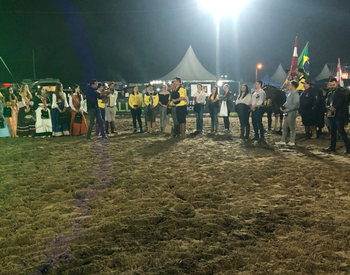 Na noite deste sábado, dia 20, foi realizada a abertura oficial com a presença de autoridades e uma cerimônia que emocionou o público. Em seus cavalos, a patronagem do CTG circulou na arena com as bandeiras, seguida da entrada em um cavalo de boi trazendo as prendas.