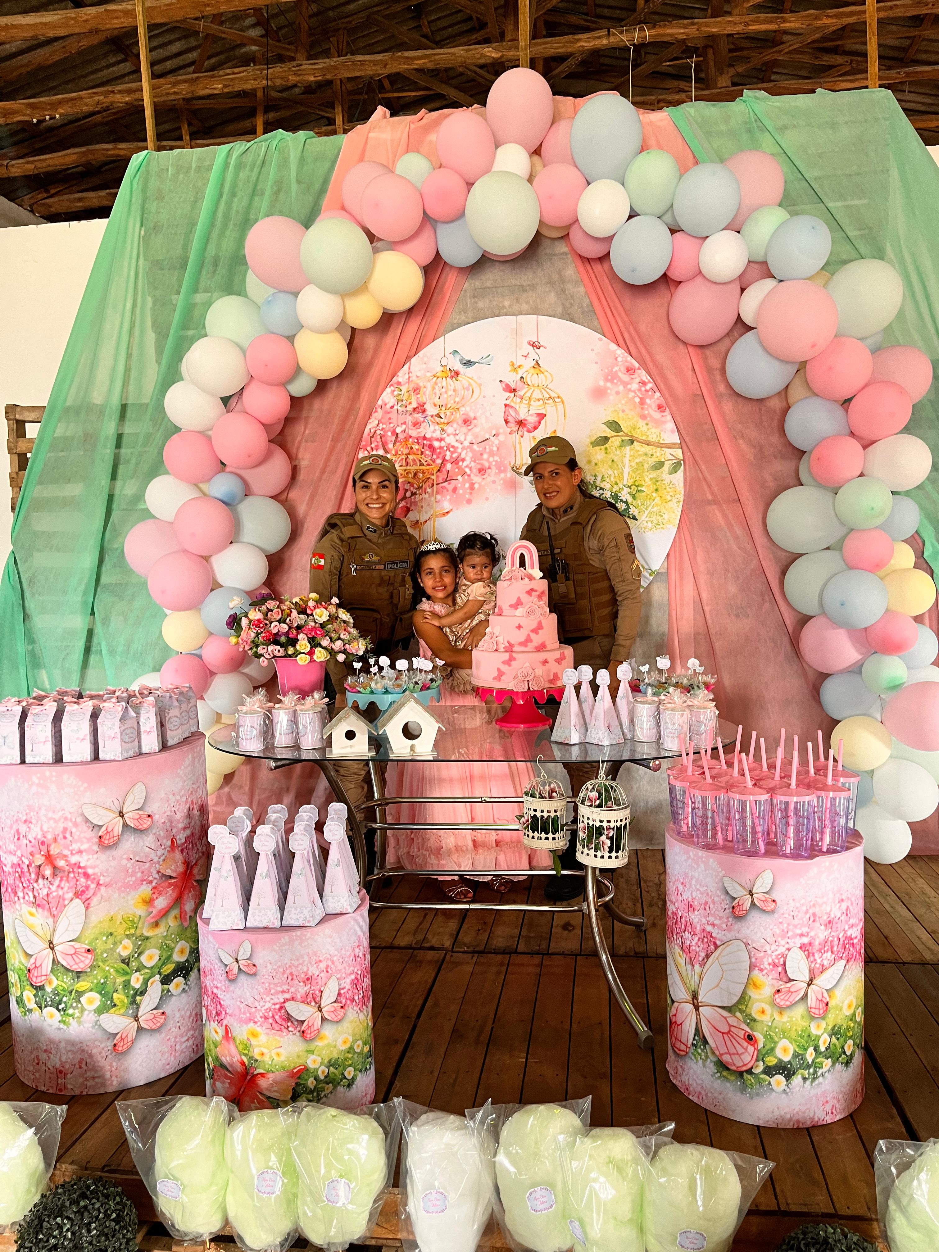 Segundo a mãe das meninas Rosi Marcelino , foi realizado um sonho da menina que sempre sonha em ser policial militar, e assim o pedido dela era de poder contar com a presença das policiais militares Gaby Nunes e Letícia que participaram da festa de aniversário de suas filhas, a surpresa foi muito bonita com a chegada da viatura da Policia Militar chegando com as policiais convidadas sendo recepcionadas pela própria aniversariante que foi abraçar ambas as policiais militares na porta da viatura.
