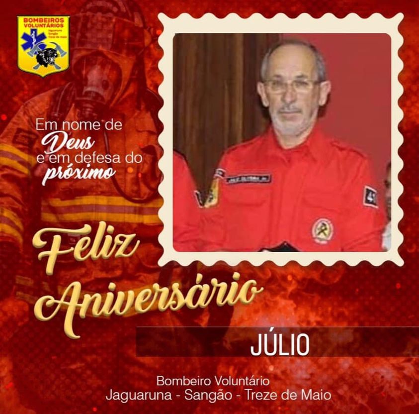 Nesta quinta feira  07/07  quem apaga  velinhas e comemora  aniversário é o bombeiros voluntário Sr. Júlio Oliveira