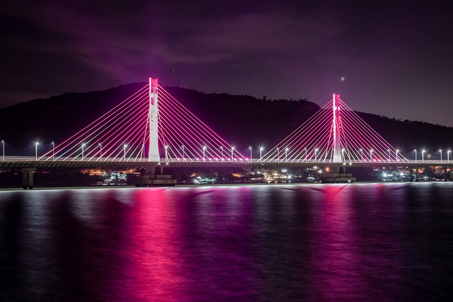 De hoje (06) a domingo (08), tons de rosa e vermelho irão refletir nos estais da ponte