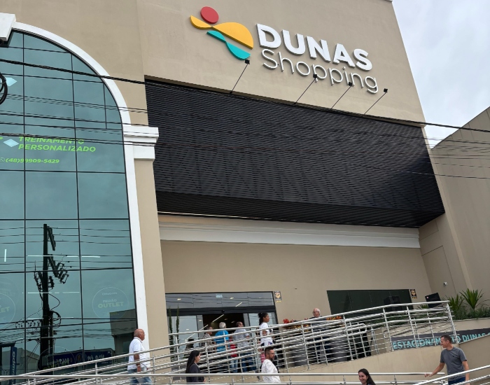 Instalado em uma área estratégica no centro da cidade, com fácil acesso à BR-101 e ao aeroporto regional, o Dunas Shopping ocupa mais de 6.700 metros quadrados de área construída e abriga 40 espaços comerciais, incluindo duas salas de cinema, praça de alimentação completa, cafeteria, banheiros em todos os andares, elevador panorâmico e um espaço multiuso para eventos. Com arquitetura moderna e ambientes amplos e iluminados naturalmente, o projeto foi desenhado para proporcionar conforto, acessibilidade e uma experiência completa para visitantes de todas as idades.